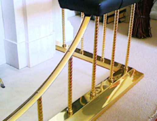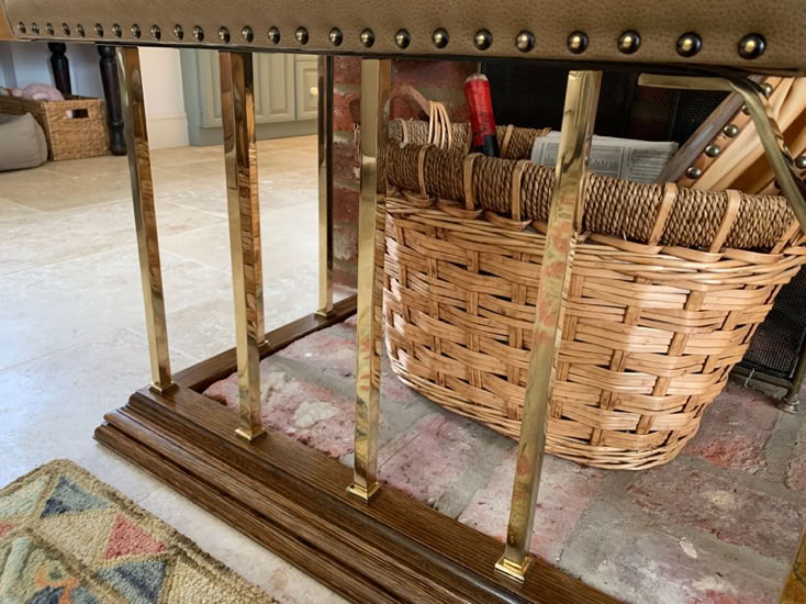For an alternative to the brass base, choose a shaped oak base, with brass uprights - shown right. The oak is stained beautifully to a light, medium or dark finish. The album below illustrates some variations. Expect a price of £1950 including vat and delivery.