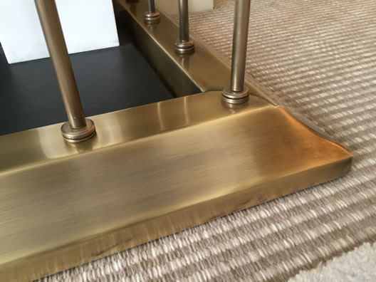 The albums show the polished brass finish, the brushed brass finish, antique brass and brass uprights set into an oak base.