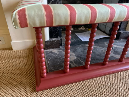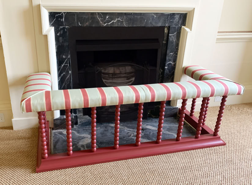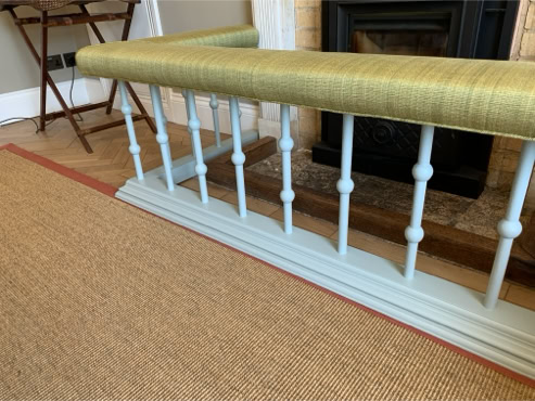 This is the latest addition to our range - a chunky fender with an oak base and round oak uprights, shown here painted with bobbins.