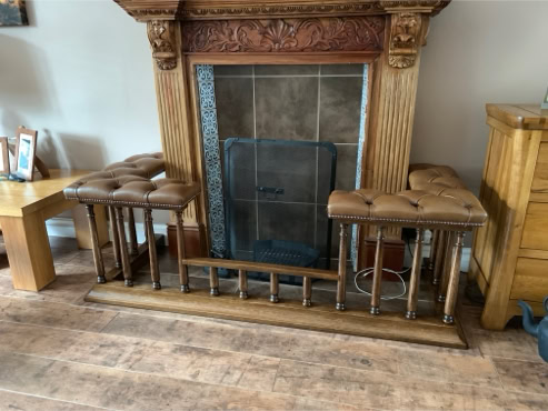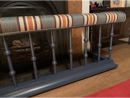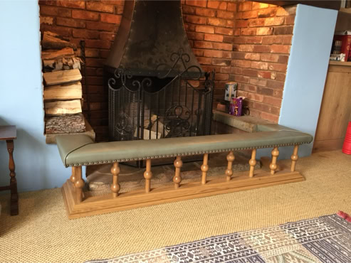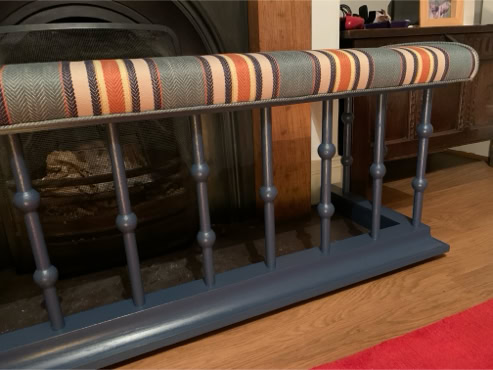 This is the latest addition to our range - a chunky fender with an oak base and round oak uprights, shown here painted with bobbins.